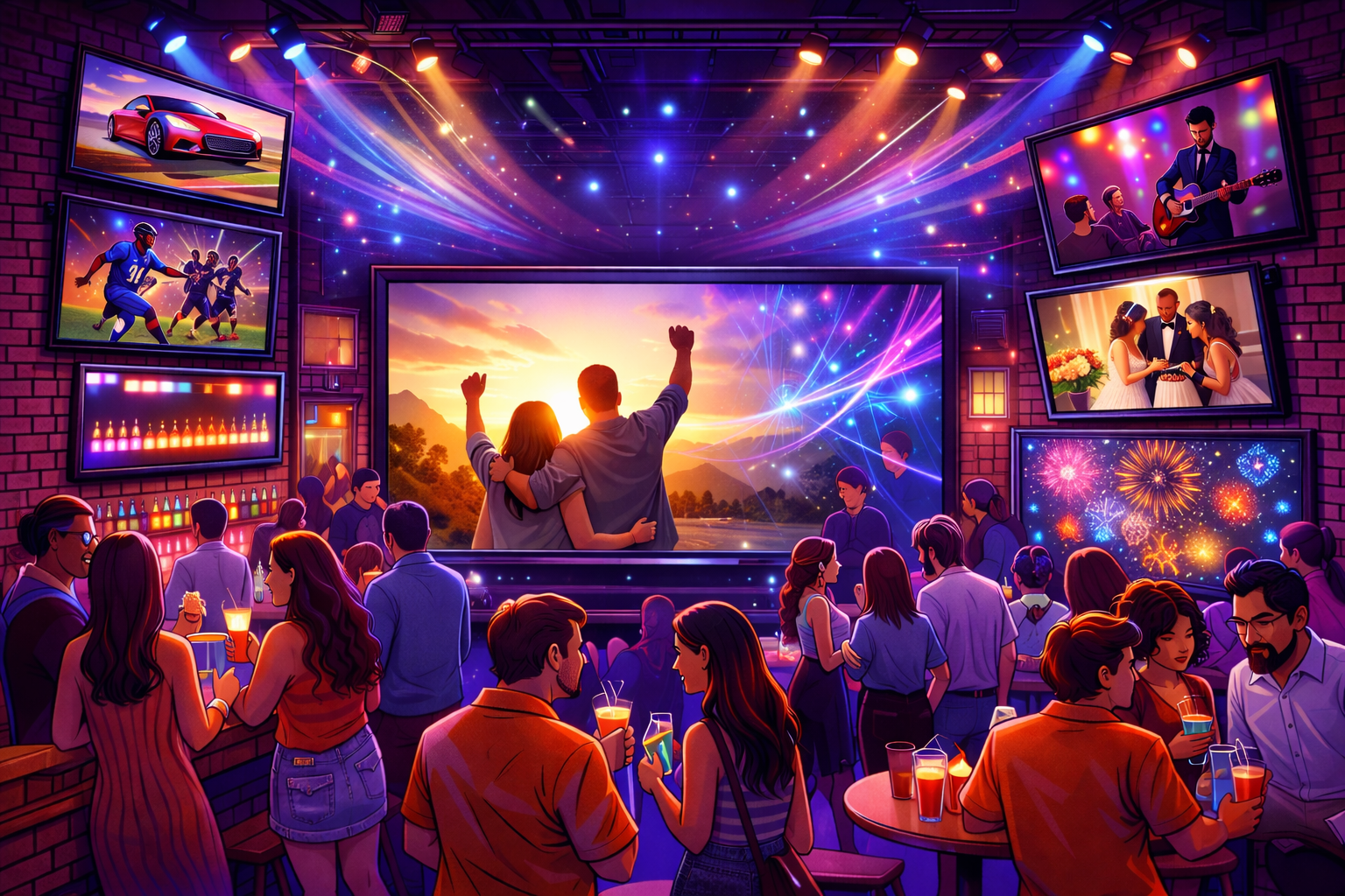 Add visuals and entertainment to your event. Includes: • Access to all venue TVs • Large projector screen for videos, slideshows, or custom visuals Great for birthdays, presentations, highlight reels, or themed events.